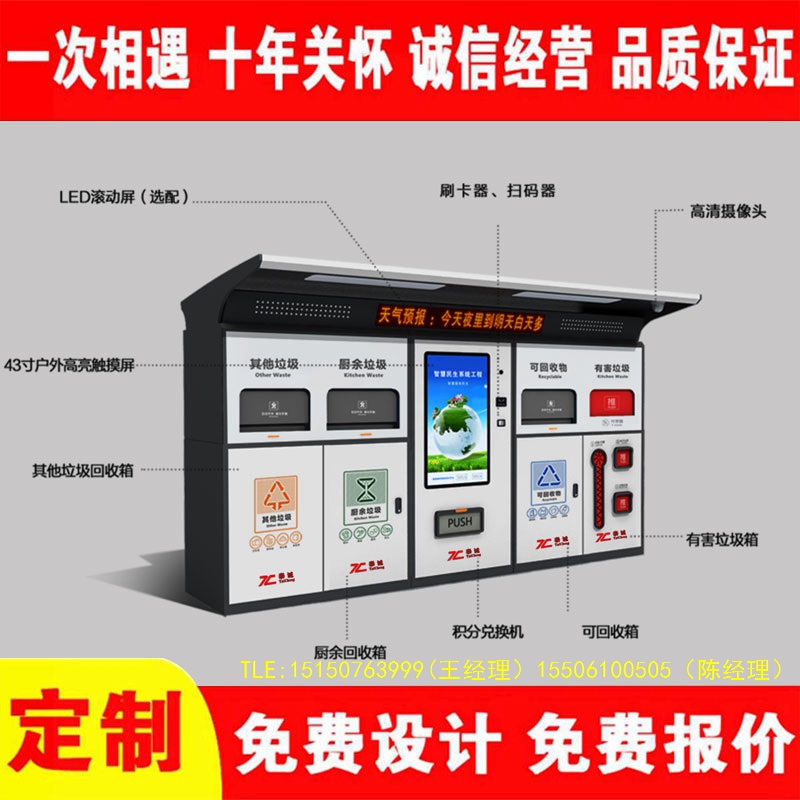 宿遷市傳宇環(huán)保設(shè)備有限公司歡迎你,公司專業(yè)生產(chǎn)定做智能垃圾箱、智能垃圾房、垃圾分類亭、垃圾分類箱等垃圾箱系列產(chǎn)品!